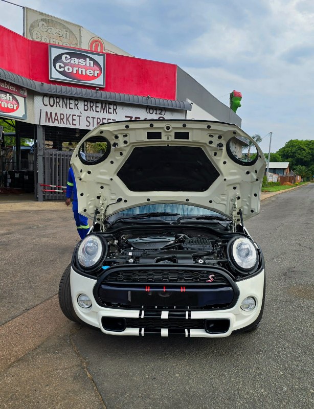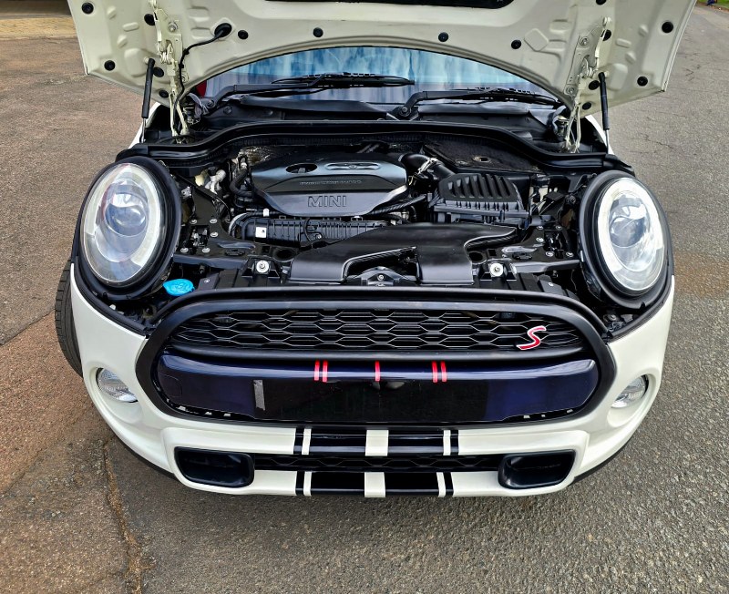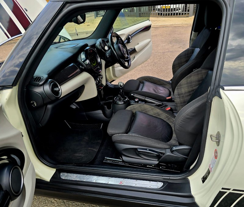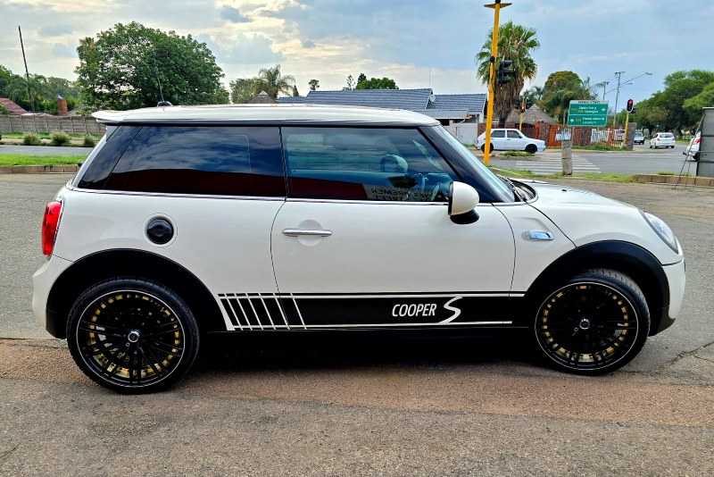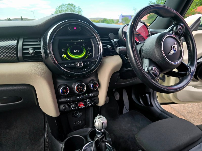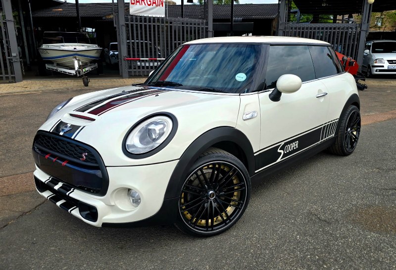 2014 Mini Cooper S 2ltr twin scroll, 189HP with B48 engine, with short shift racing gear box, Full Panoramic roof, two tone leather trim, 19″ Mag wheels on continental Spot tyres.